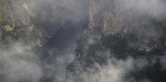 Highline walker breaks records crossing 800-meter-high Chiapas canyon