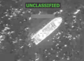 an aerial shot of a U.S. military attack on a boat in the Eastern Pacific