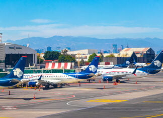 Aeromexico planes line up at Mexico City International Airport (AICM)