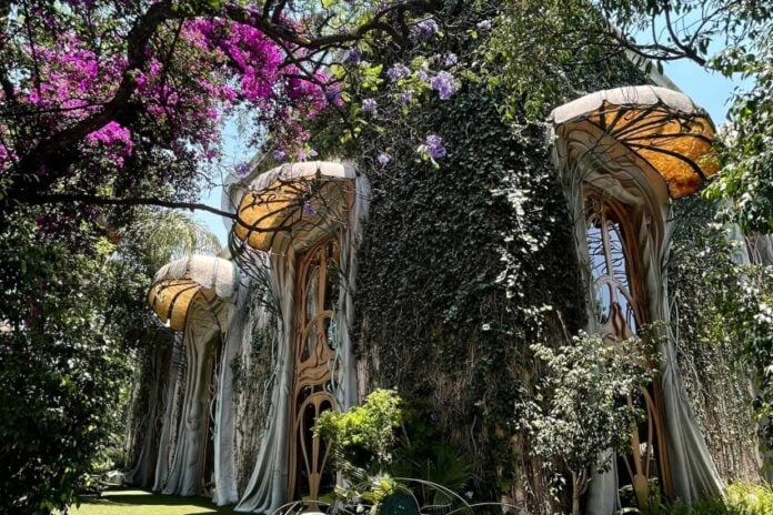 On the corner of Mexico City’s Cerrada Monte Ararat, just one block off Paseo de las Palmas in Lomas de Chapultepec, is a house — but it’s not just any house. It’s a whimsical masterpiece of Art Nouveau design, with a honey-colored facade draped in ivy and curvaceous windows rising two stories. Rounded iron gates dwarf the entrance, the sidewalk undulates and bougainvillea and palms line the approach.