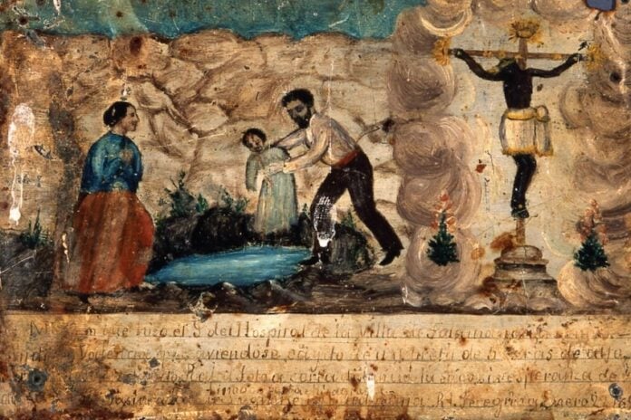 To understand this practice better, Mexican colonial art specialist Maria Montenegro spoke with MND. “Exvotos in Mexico are offerings given to a deity.” In the form of “small oil paintings,” explains the specialist, the practice can be traced to 16th-century Italy. However, it arrived in present-day Mexico with the Spanish invasion of the Americas.