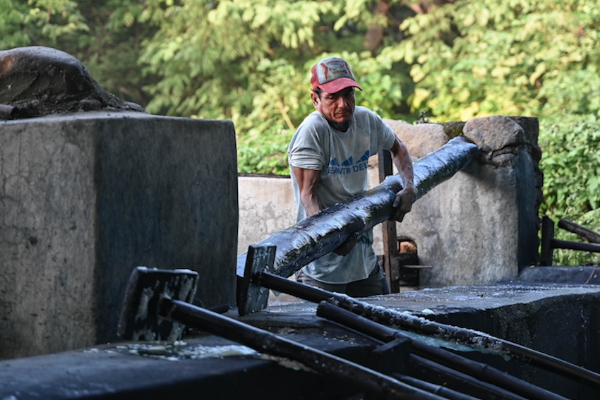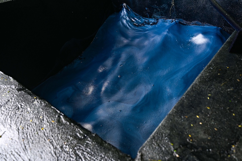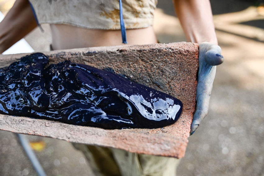 Arriving in Niltepec, after a 7-hour bus ride from Oaxaca City, you are immediately hit with a wave of heat thick with stifling humidity, perfect conditions for the growing of this valuable crop. It takes approximately 200 kilograms of raw plant material to end up with one kilogram of the dye, a dried fermented paste made from the leaves, with a charcoal-like consistency. Due to the intensive process and low yield, the dried indigo is often referred to as ‘blue gold’. Currently, the value is around 3,500 pesos (US $190) per kilo.