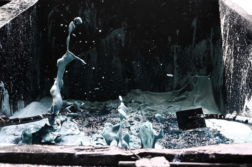 Processing takes place in large man-made pools called ‘pilas’, which are often hundreds of years old. The ‘añileros’ load up the pilas with the fresh cut plants, pressing them into water and held down with a heavy wooden lattice. Over several hours the plant ferments, turning the liquid an acid yellow/green color.