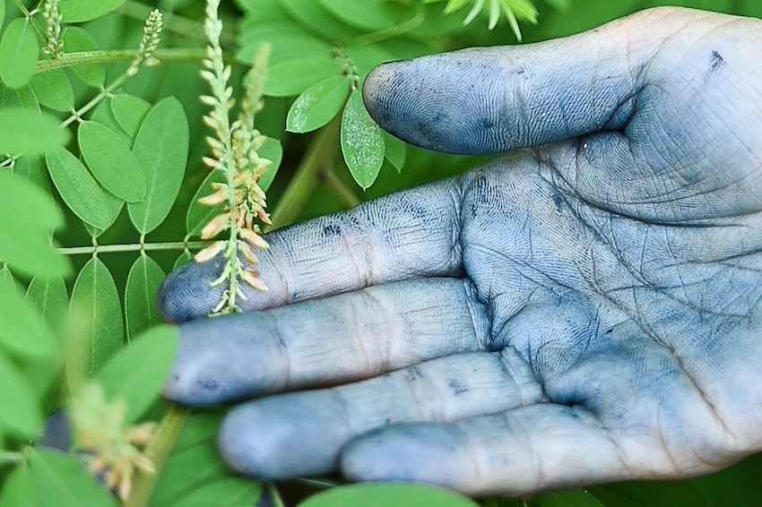 The indigo grown in Oaxaca is a strain called Indigofera suffruticosa, native to the Americas. The plant grows in the rainy season, typically between May and September, and must be harvested before it flowers.