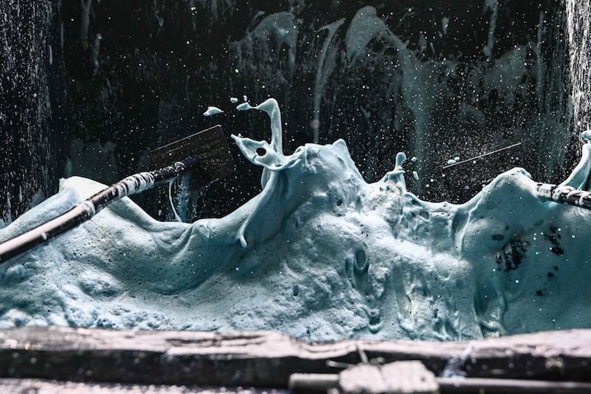 Processing takes place in large man-made pools called ‘pilas’, which are often hundreds of years old. The ‘añileros’ load up the pilas with the fresh cut plants, pressing them into water and held down with a heavy wooden lattice. Over several hours the plant ferments, turning the liquid an acid yellow/green color.