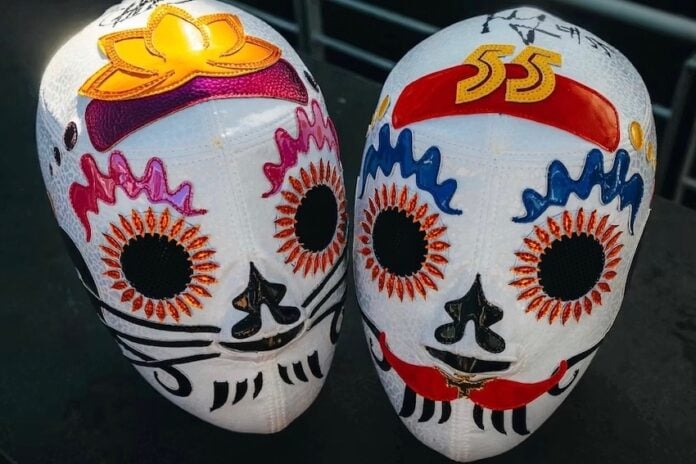 “I’ve loved lucha libre since I was a kid,” he says. “I’ve never seen a real superhero, like Batman or Superman, but I’ve seen Dos Caras and Tinieblas. Those guys were real. Now, wearing a mask represents my alter ego, a character that only shows up when I wear it. I’m not a luchador, but I respect the mask tradition and I don’t like to make it look funny or anything.”