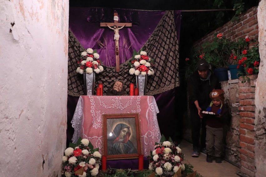 Each year, at the beginning of Holy Week, the homes of San Miguel residents get ready to open their doors to visitors on the day known to Catholics as the Friday of Sorrows, or Viernes de Dolores. On this day, two days before Palm Sunday, the scent of chamomile mingles with that of tuberoses and the white and purple flowers that decorate the altars.