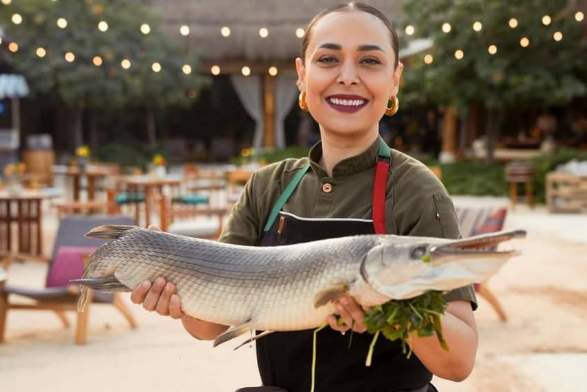 “The pejelagarto, of course!” she said, referring to the prehistoric fish found in the rivers of Tabasco. “I will season it with spices I brought from home, including momo (hoja santa), chipilín and criollo parsley.”