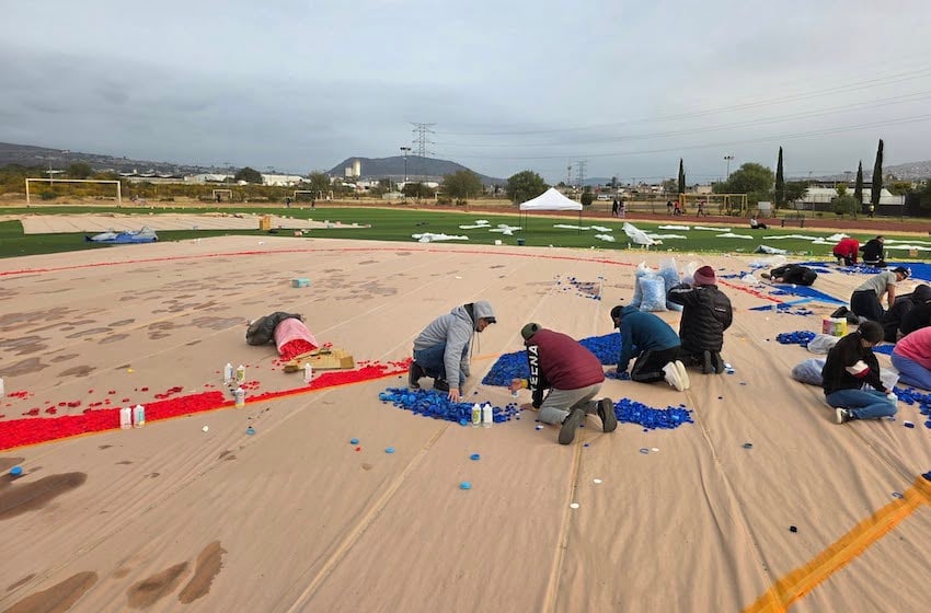 The mosaic covered 1,203 square meters (12,900 square feet) and was assembled earlier this month from more than 1 tonne of plastic bottle caps on a soccer field in México state on the outskirts of the Mexico City metropolitan area.
