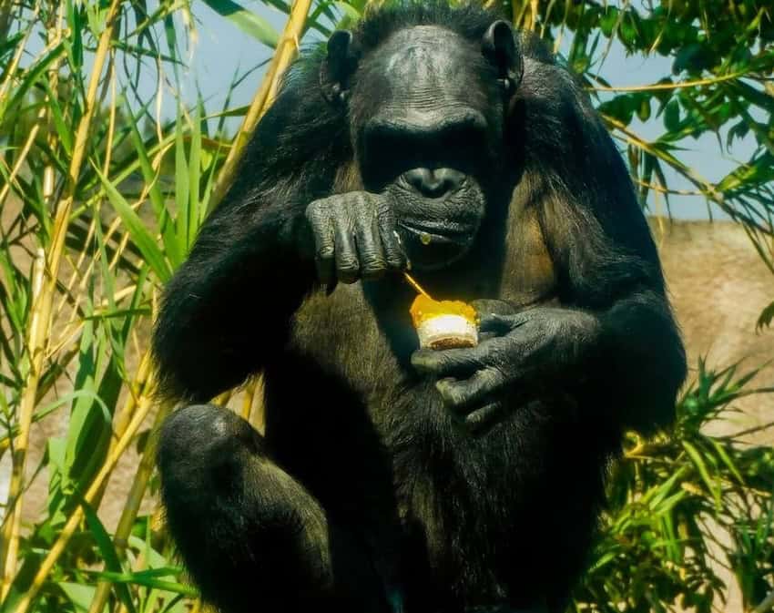 Images shared by Sedema show giraffes, chimpanzees, patas monkeys and a bobcat licking and pawing at the frozen blocks, which double as enrichment toys.