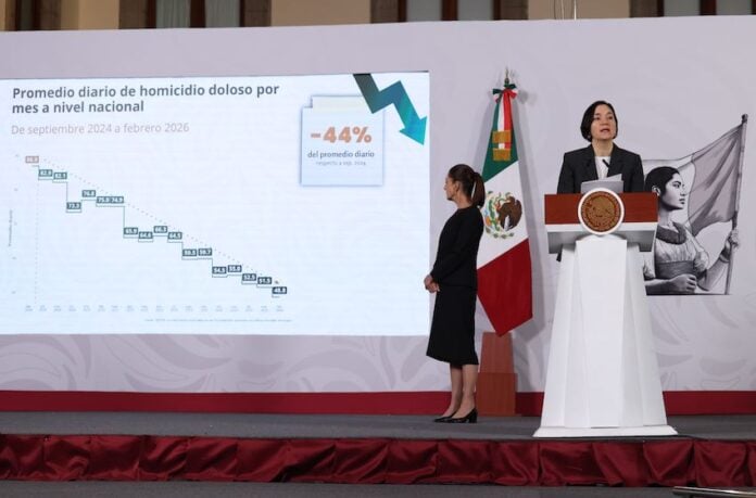 She highlighted that the daily homicide rate last month represents a reduction of 44% compared to September 2024, the final month of the presidency of Andrés Manuel López Obrador.