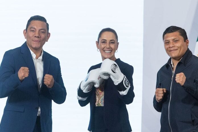 World Boxing Council President Mauricio Sulaimán and various professional boxers attended President Claudia Sheinbaum’s Monday morning press conference to help promote the federal government’s “Boxing for Peace” initiative.