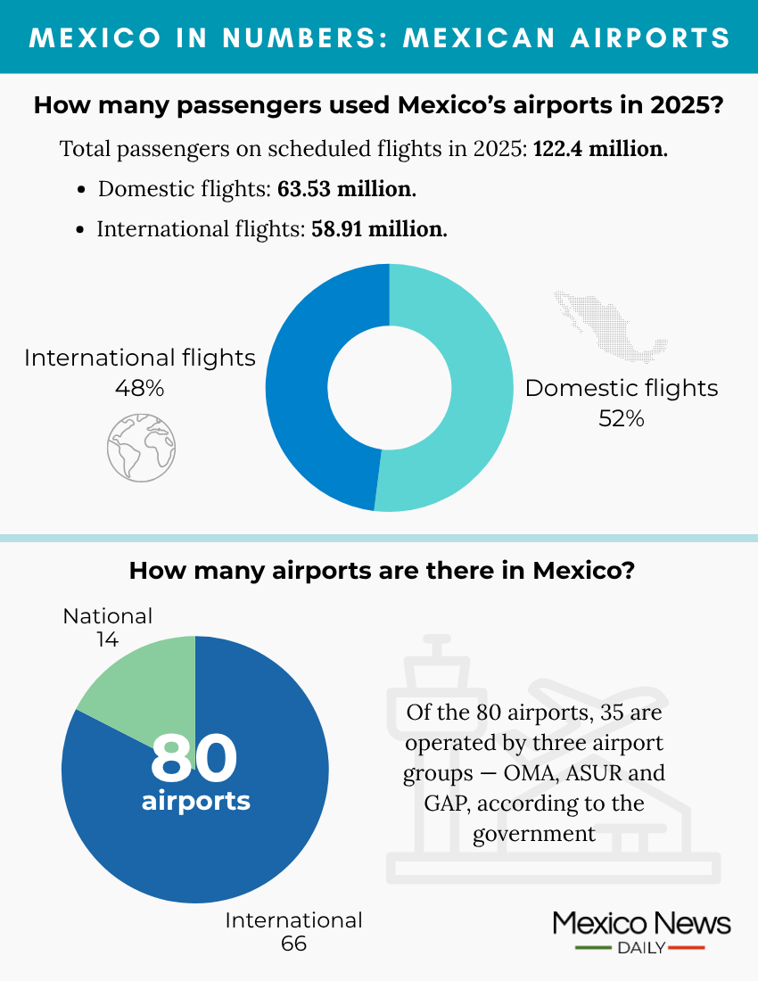 Those 35 airports and the Mexico City International Airport handle 89.99% of all passengers and 79.15% of air freight, according to 2025 data from the Federal Civil Aviation Agency (AFAC).
